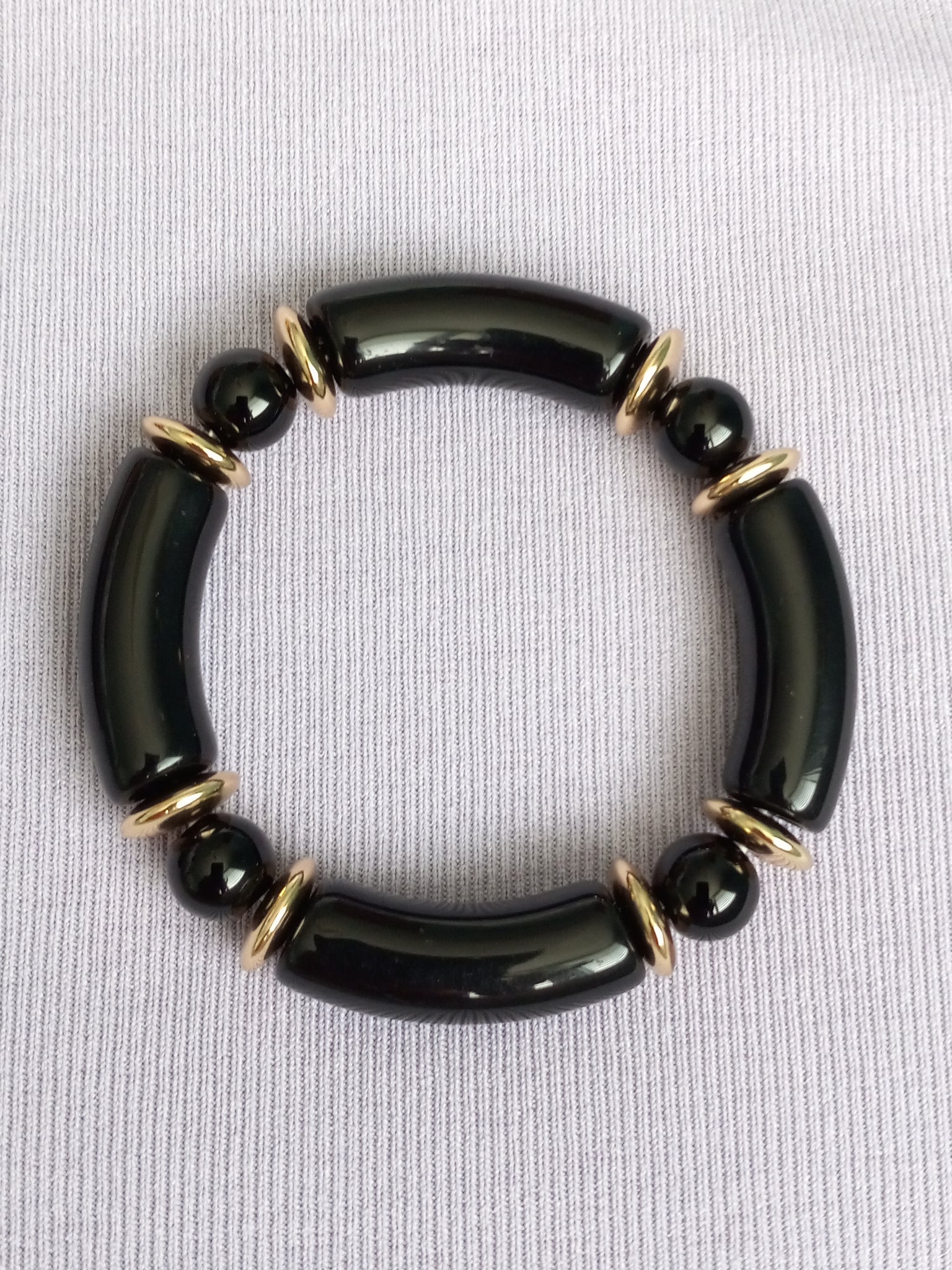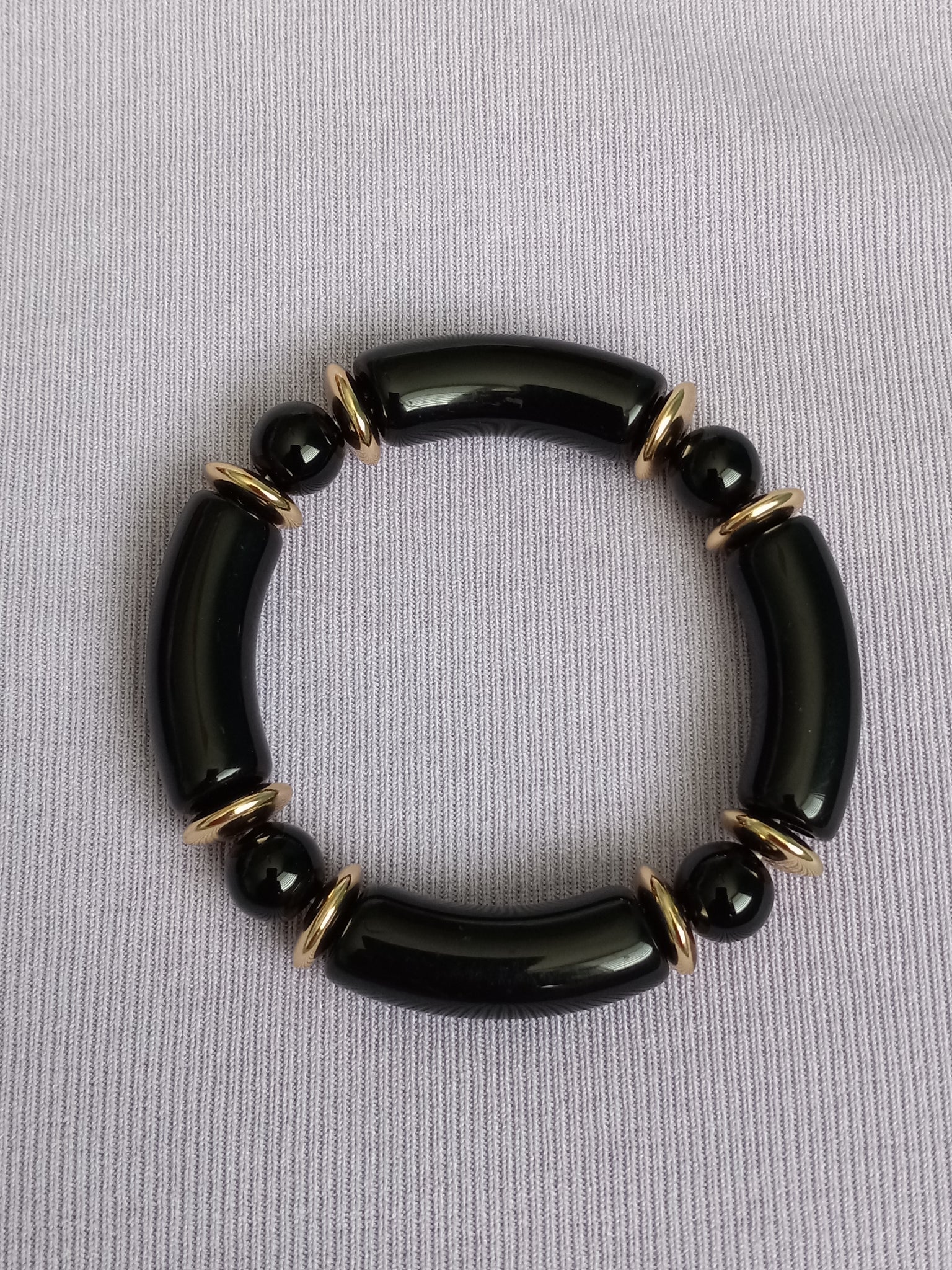 Una pulsera ideal para tu ropa casual. La pulsera estira y sus piedras redondas son en cristal.