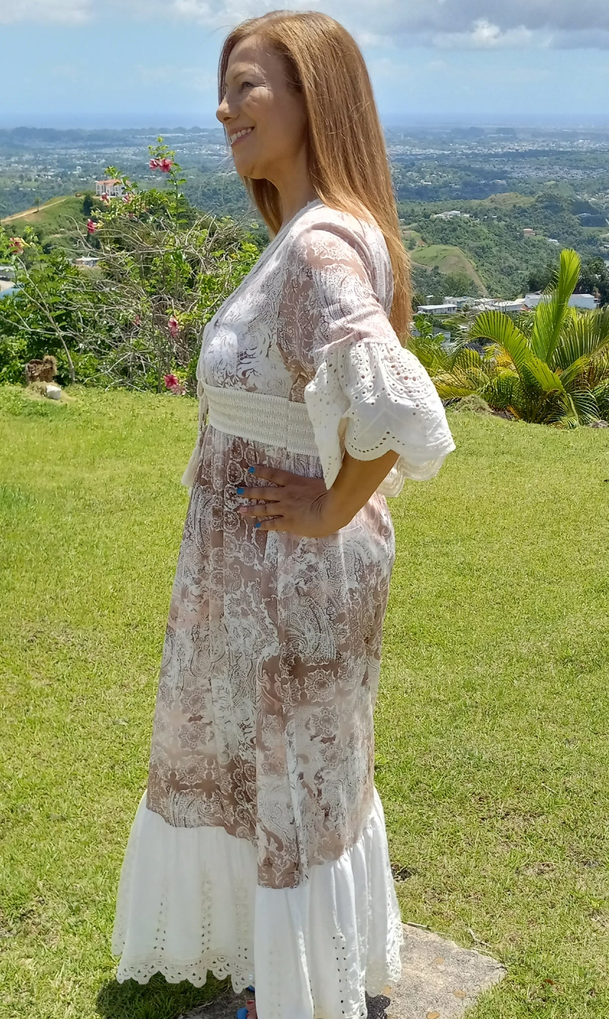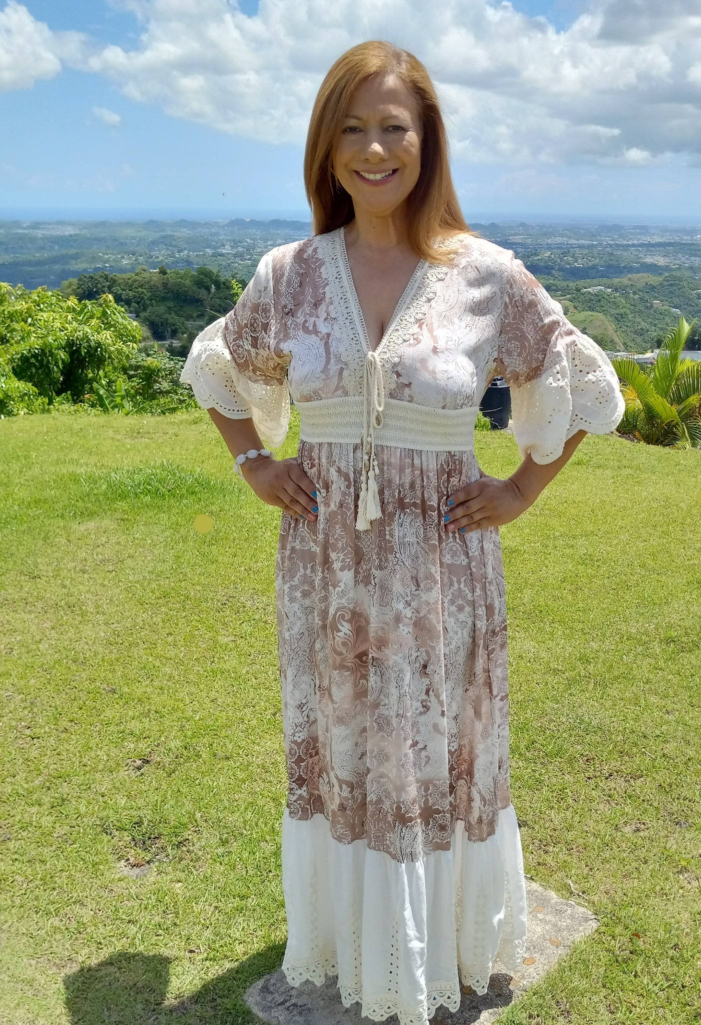 Esta preciosidad es línea italiana. Tiene bellos detalles en su base de colores neutrales. La parte debajo del busto estira para mejor entalle y comodidad. Es one size desde tamaño small hasta tamaño large.