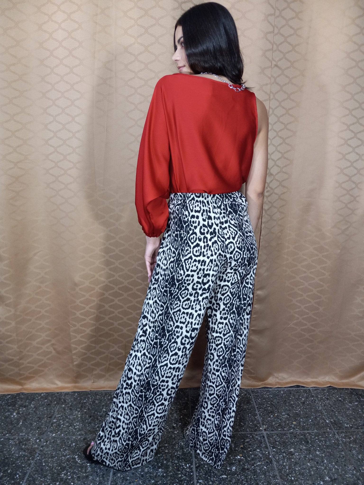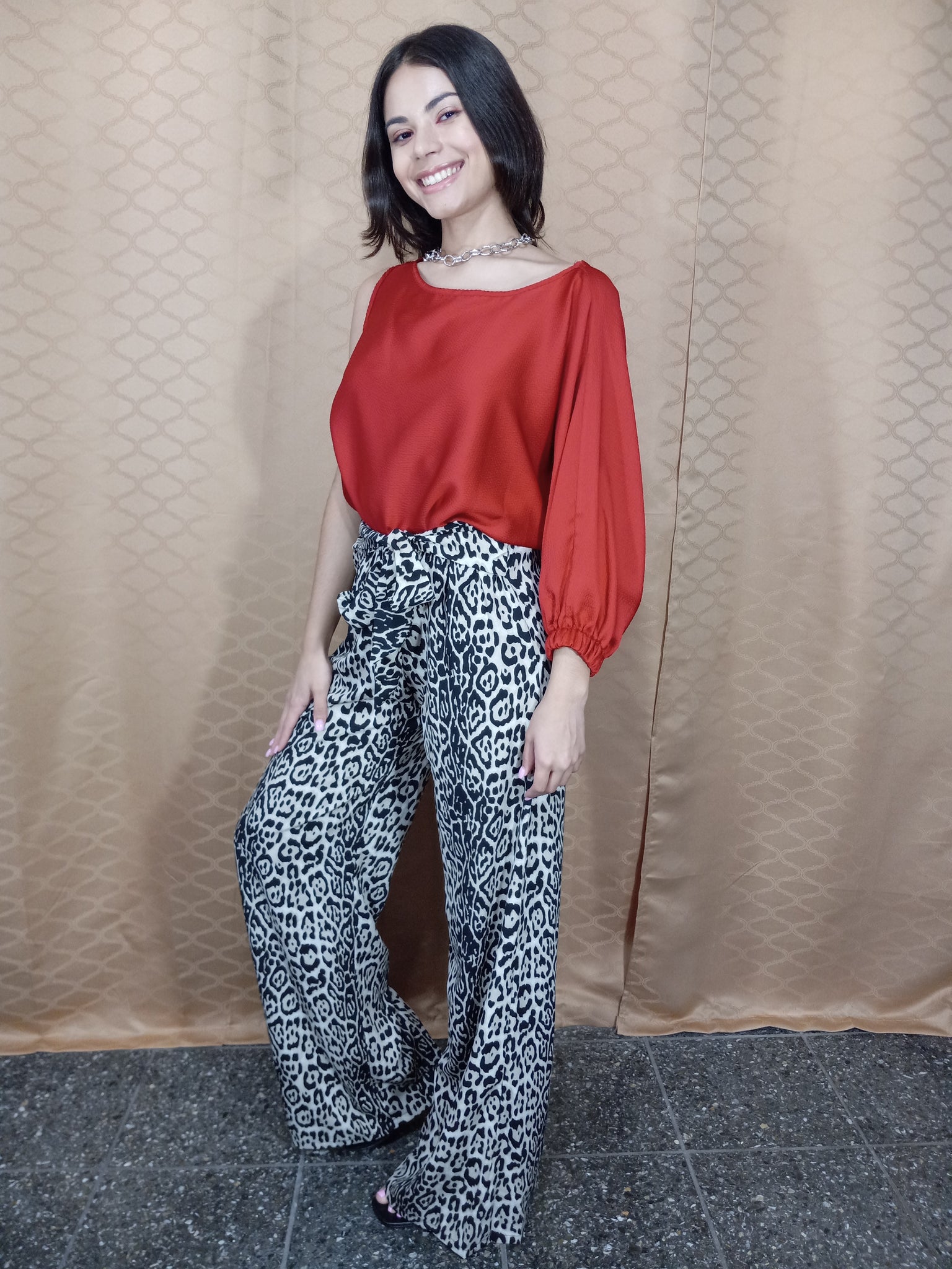 Esta blusa es cómoda y elegante. La puedes usar de día o de noche. Su tela es de suave textura, satinada y con cintura elástica. La puedes combinar con tus mahones o con un pantalón casual para un look más elegante. El tamaño que se muestra en la foto es small. También está disponible en color azul royal