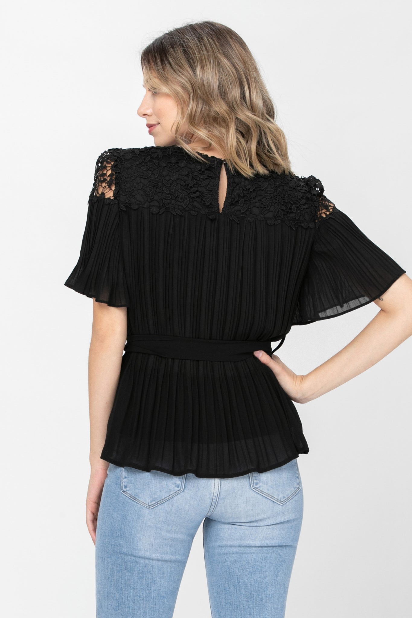 Blusa plisada y adornada en su parte superior. Es una blusa que podrás usar para muchos lugares.