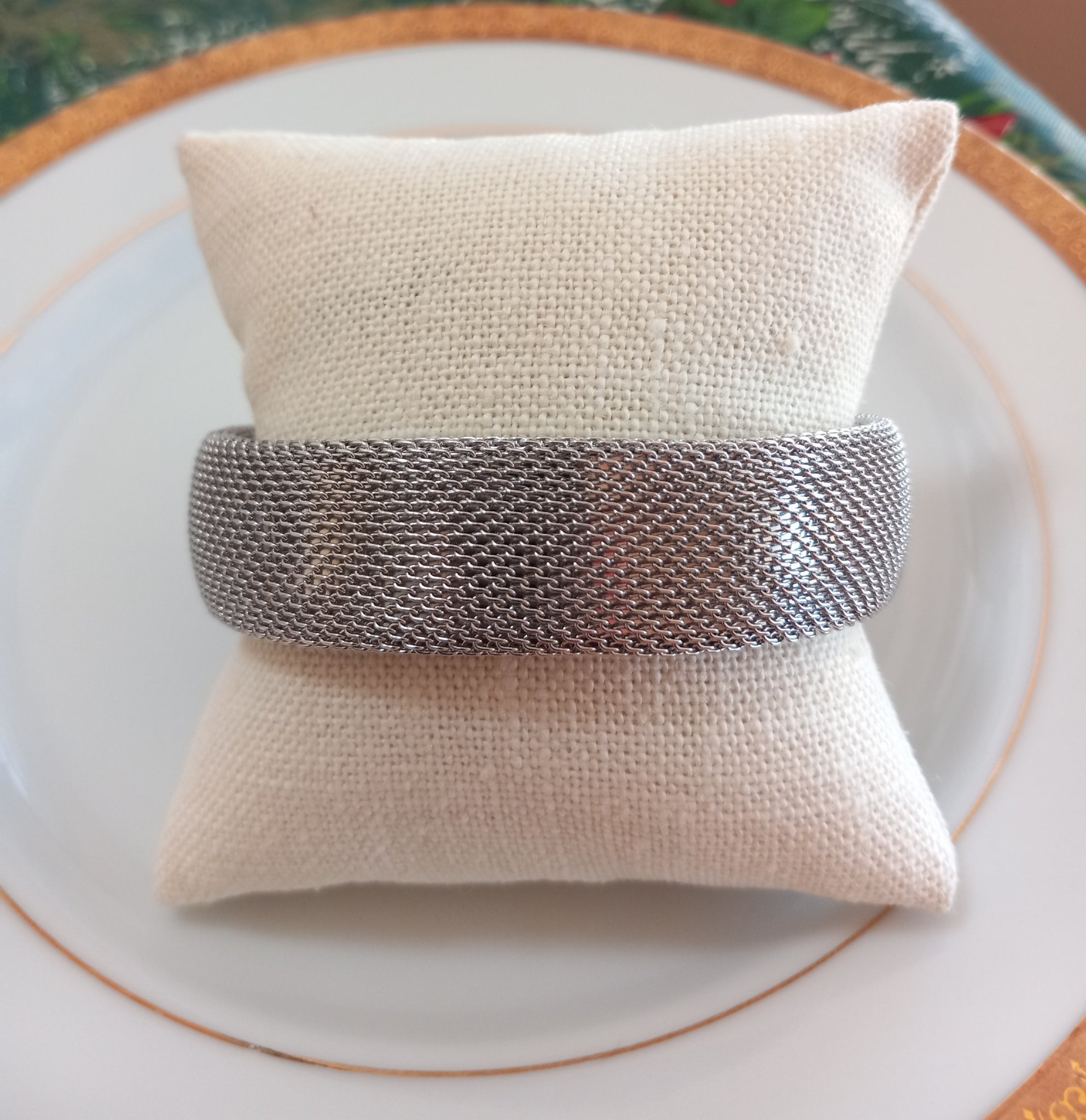 Pulsera ancha en textura de malla.