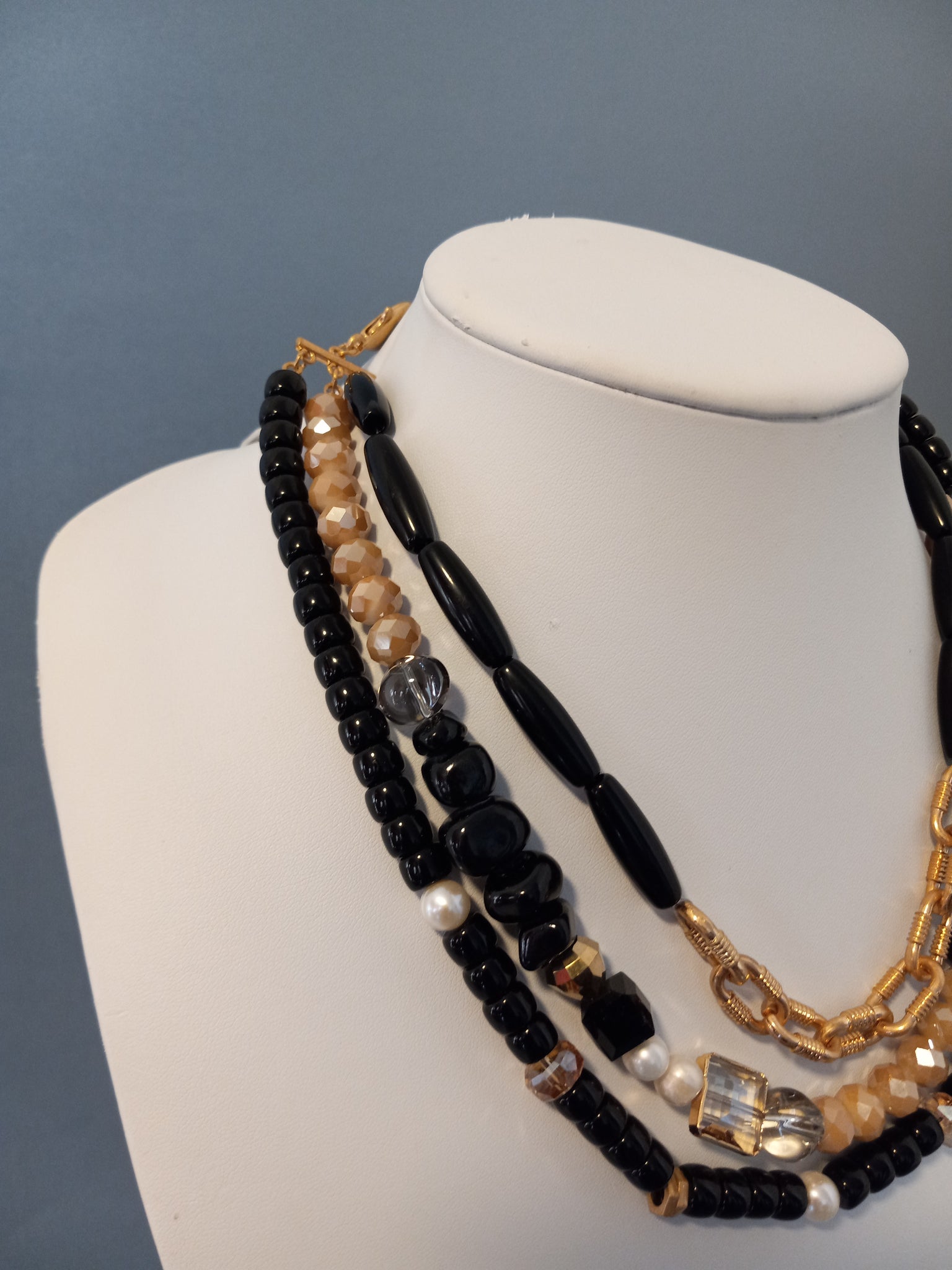 Distingue más tus prendas de vestir con este collar con piedras, en capas y algunos eslabones.